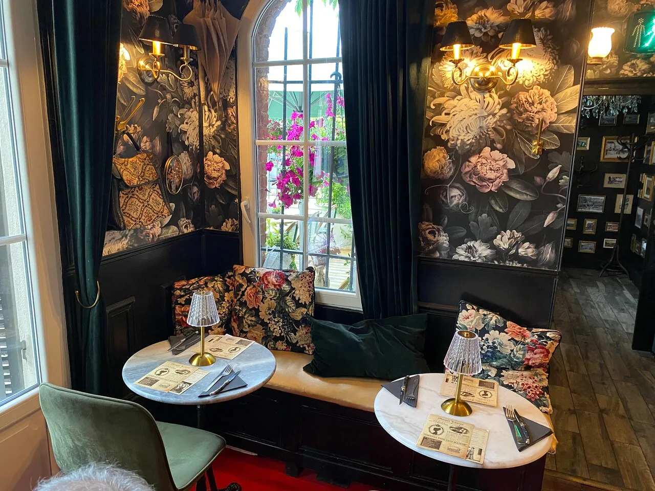 Les deux propriétaires, Marie et Baptiste ont voulu rendre hommage à cette époque si particulière et osé un concept “comme chez mamie” grâce à une décoration intérieure soignée : nappes à fleurs, cartes postales, photos d’aïeux, musique et objets d’époque, etc. Le cadre est en même temps original et chaleureux.